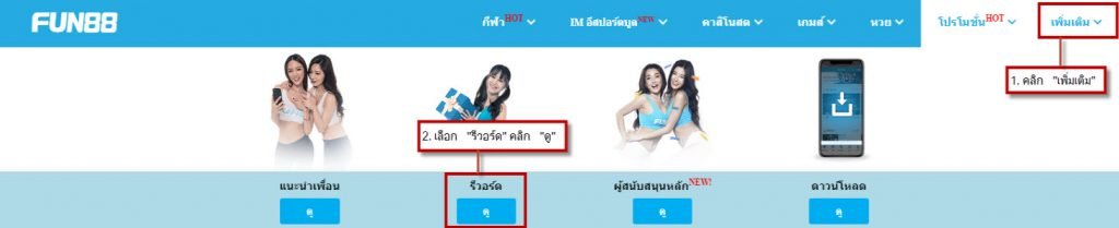 วิธีดูแต้มรีวอร์ดใน Fun88
